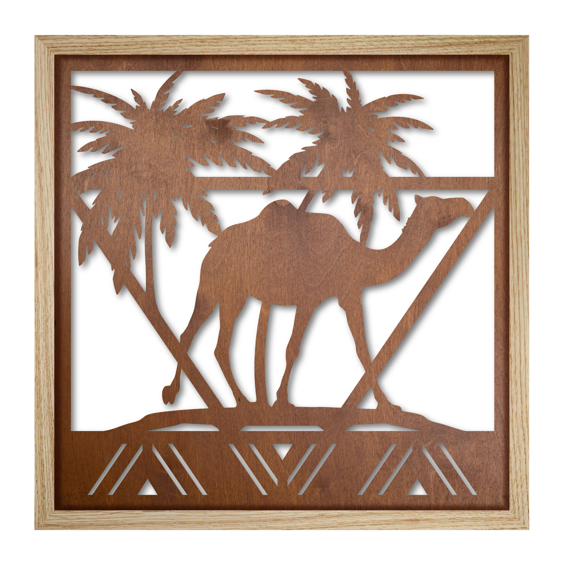 Obraz został stworzony z panelu wycinanego laserowo w sklejce drewnianej i osadzony w ramie z litego drewna dębowego o odpowiedniej grubości listew, aby otrzymać optymalne odsunięcie panelu od powierzchni ściany i uzyskać efekt przestrzenności obrazu.