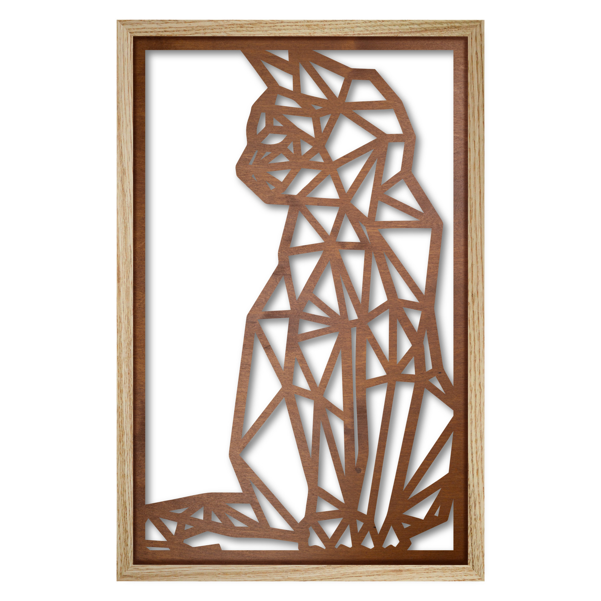 Obraz został stworzony z panelu wycinanego laserowo w sklejce drewnianej i osadzony w ramie z litego drewna dębowego o odpowiedniej grubości listew, aby otrzymać optymalne odsunięcie panelu od powierzchni ściany i uzyskać efekt przestrzenności obrazu.