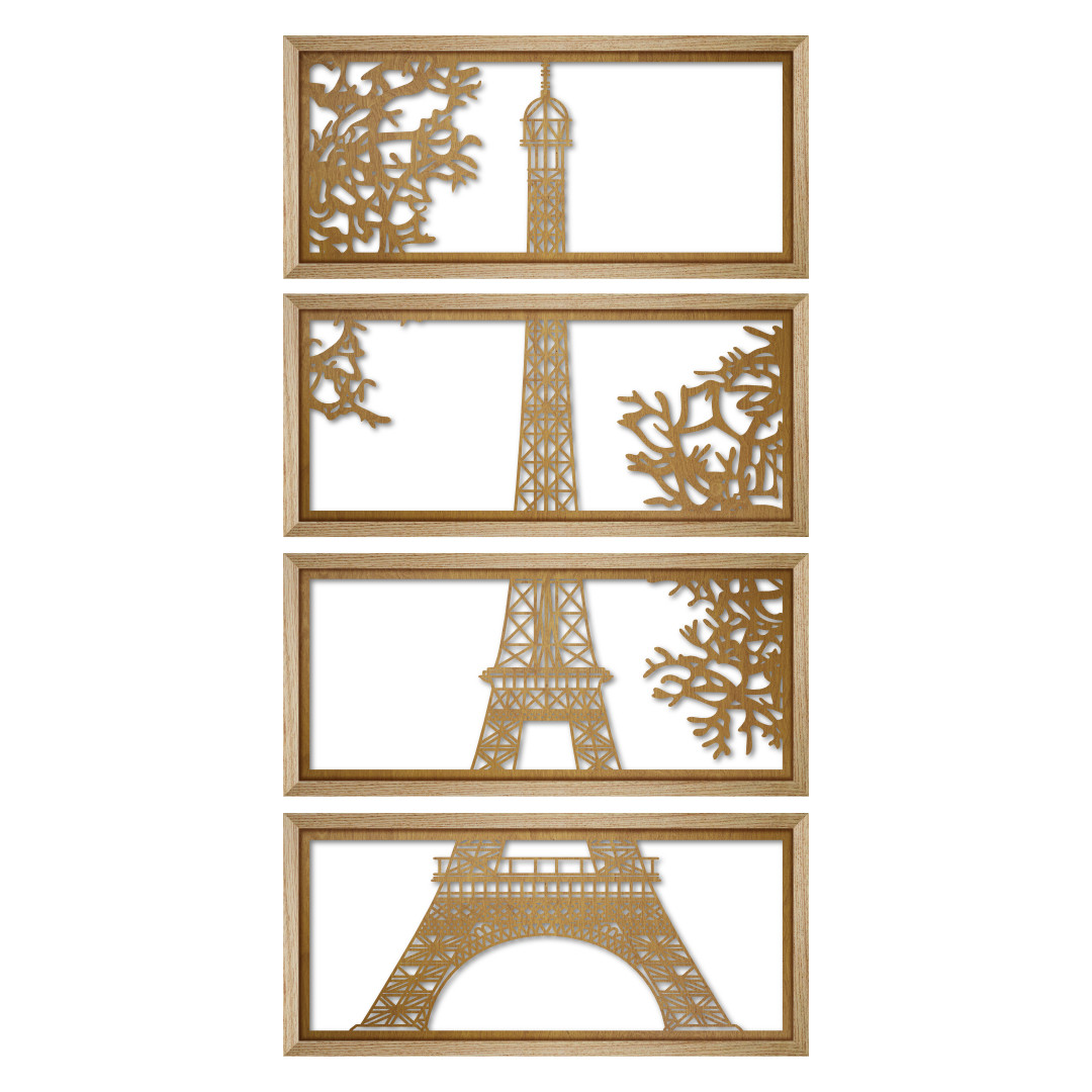 Obraz ażurowy w ramie dębowej, 4-częściowy, jasny dąb, projekt 10