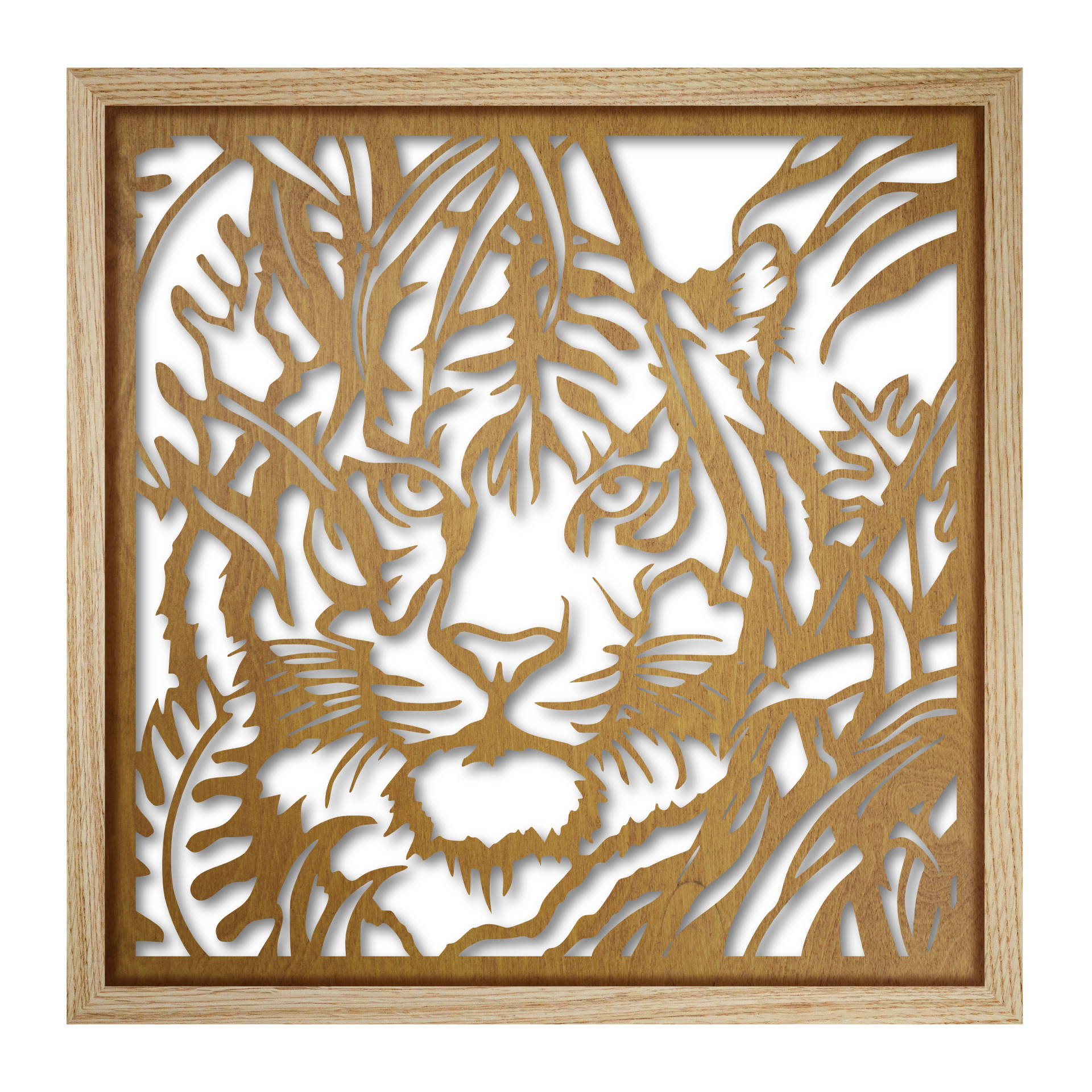 Obraz został stworzony z panelu wycinanego laserowo w sklejce drewnianej i osadzony w ramie z litego drewna dębowego o odpowiedniej grubości listew, aby otrzymać optymalne odsunięcie panelu od powierzchni ściany i uzyskać efekt przestrzenności obrazu.