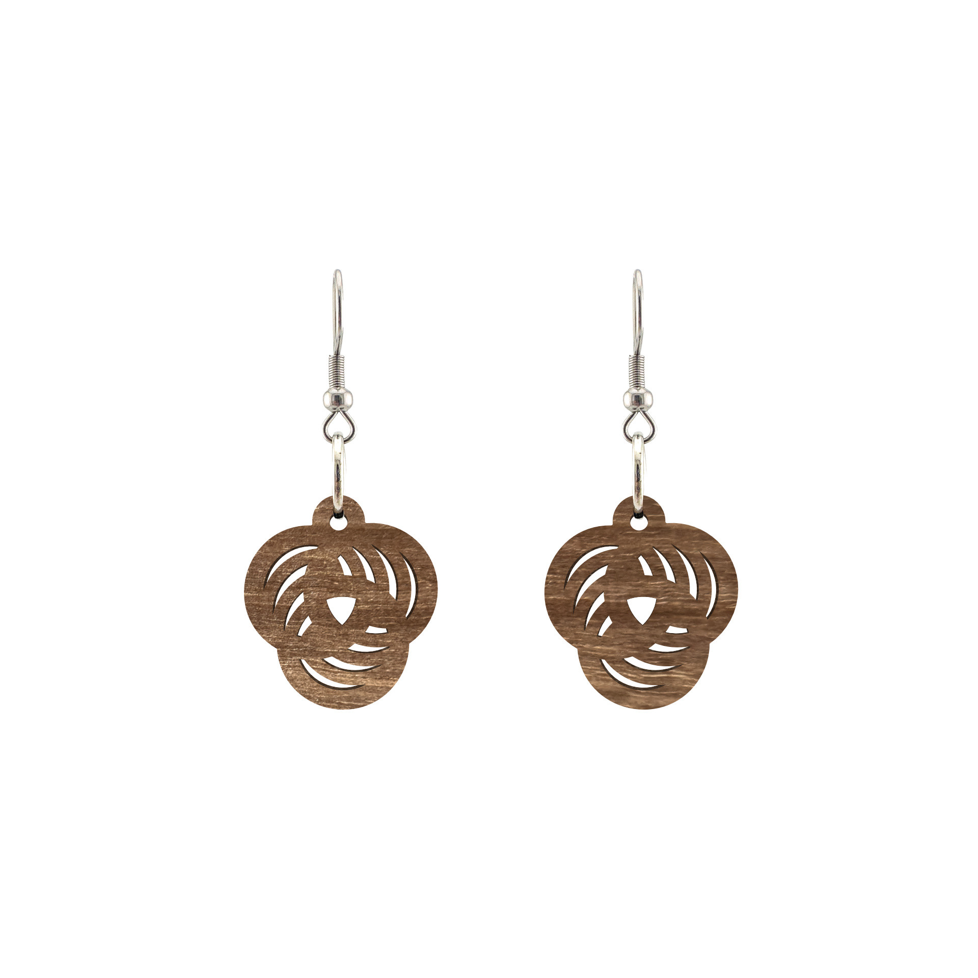 Kolczyki drewniane, orzech włoski, bigle ze stali chirurgicznej, projekt 20