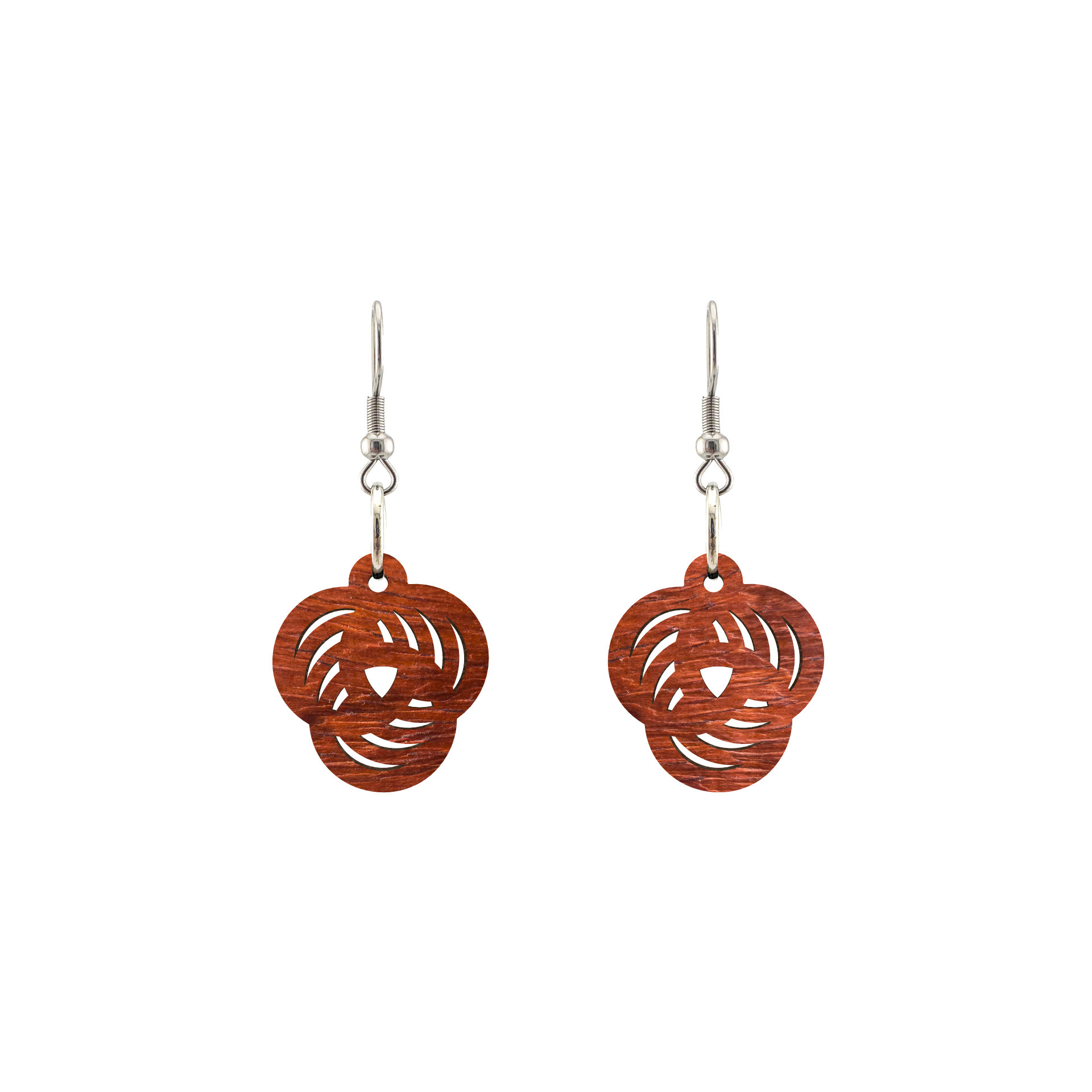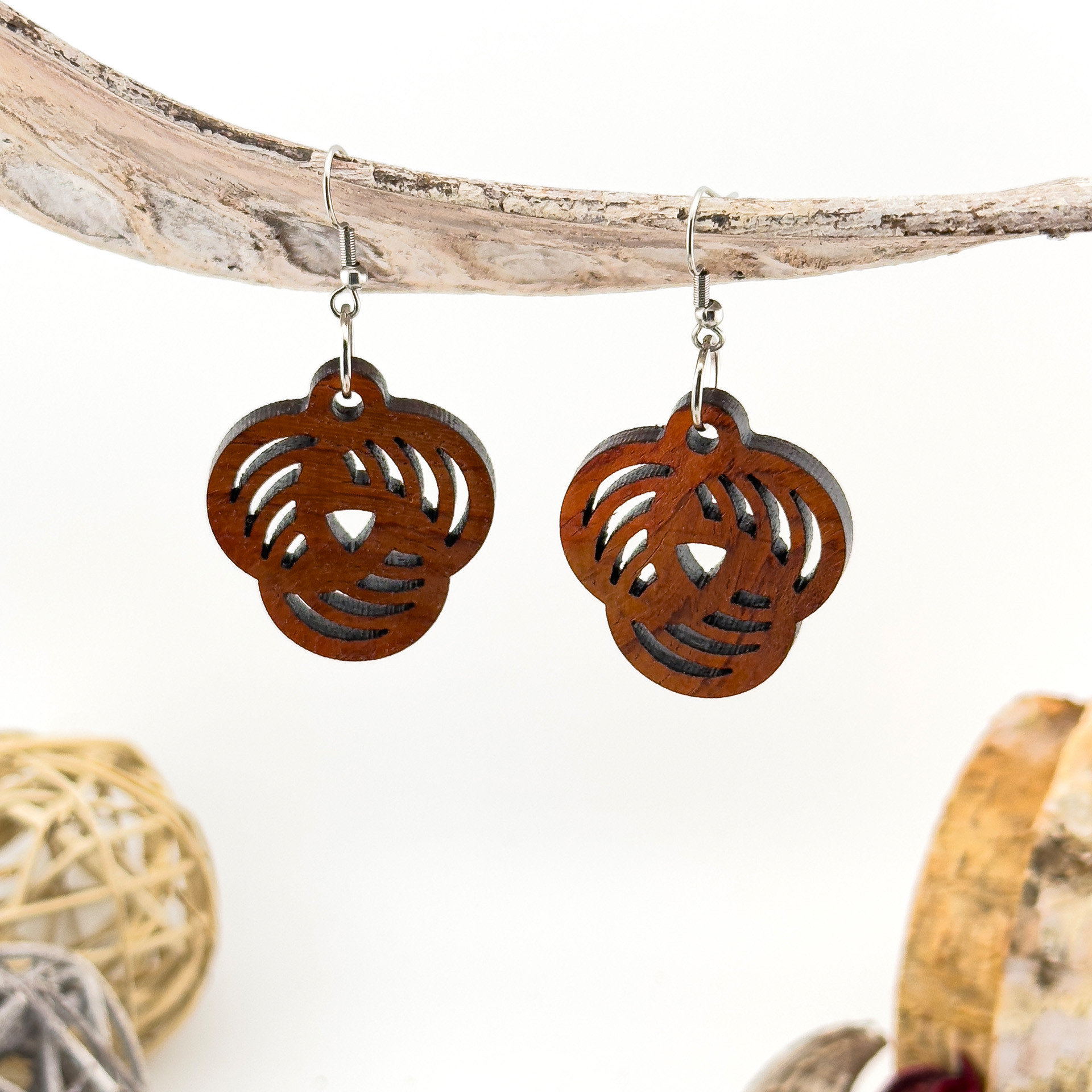 Kolczyki drewniane, drewno egzotyczne padouk, bigle ze stali chirurgicznej, projekt 20