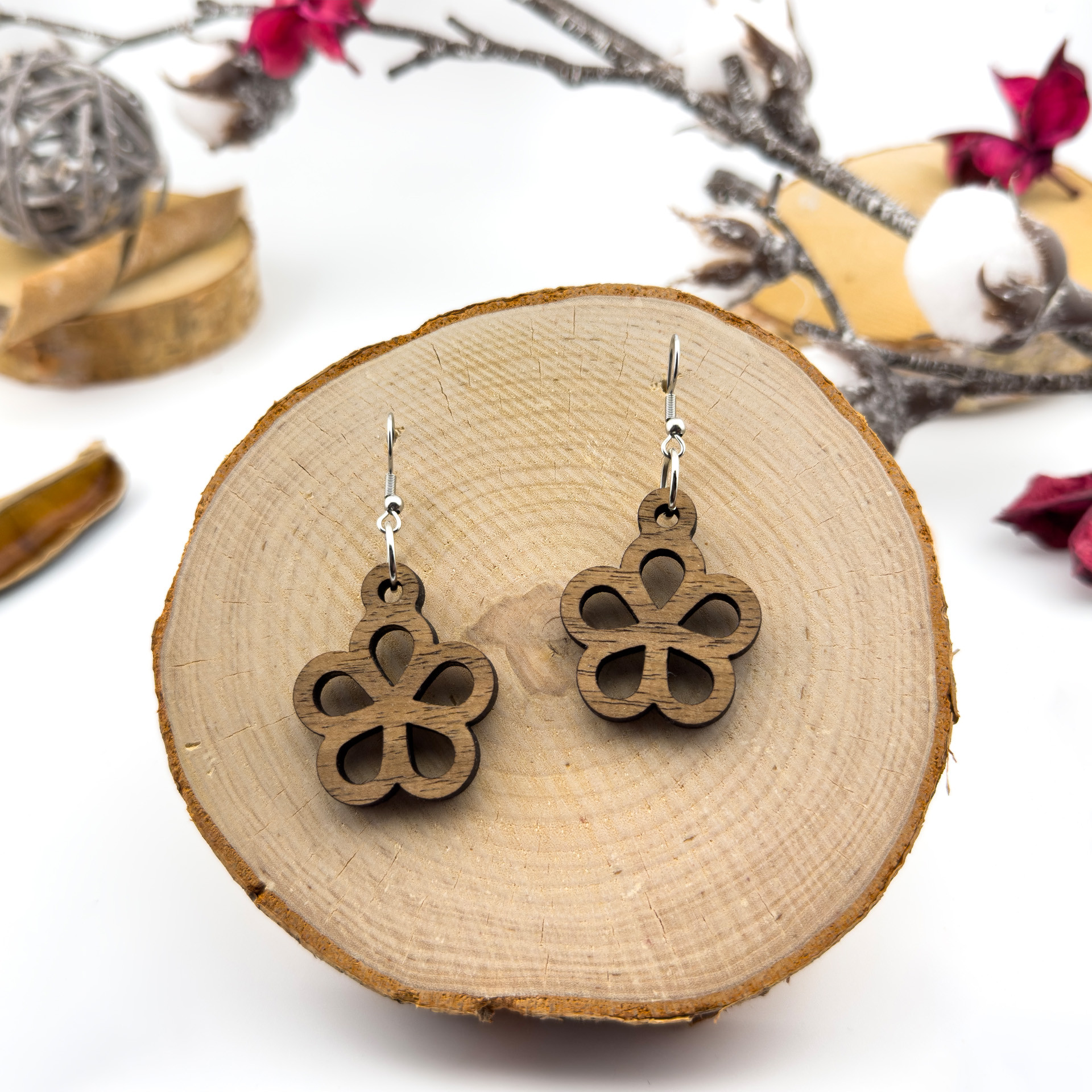 Kolczyki drewniane, orzech włoski, bigle ze stali chirurgicznej, projekt 22