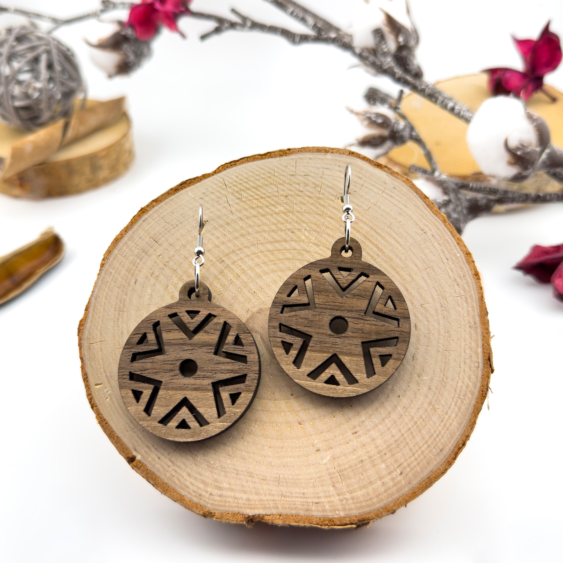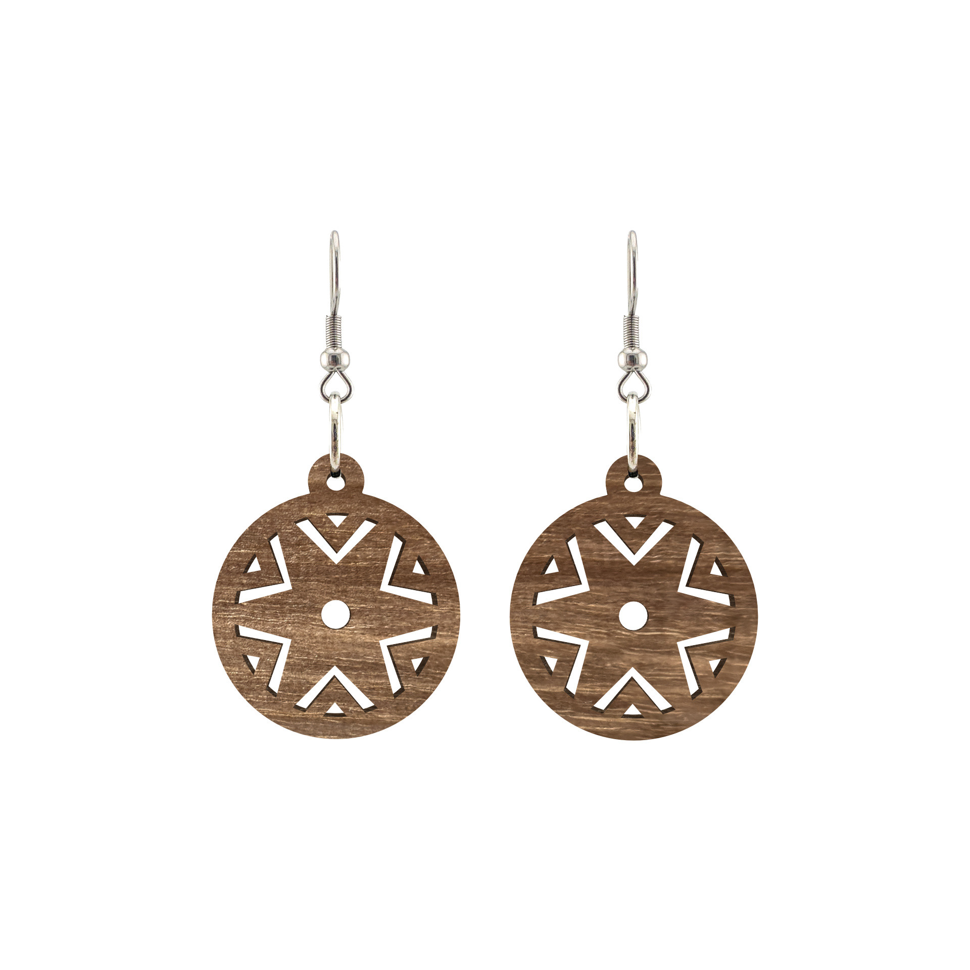 Kolczyki drewniane, orzech włoski, bigle ze stali chirurgicznej, projekt 32