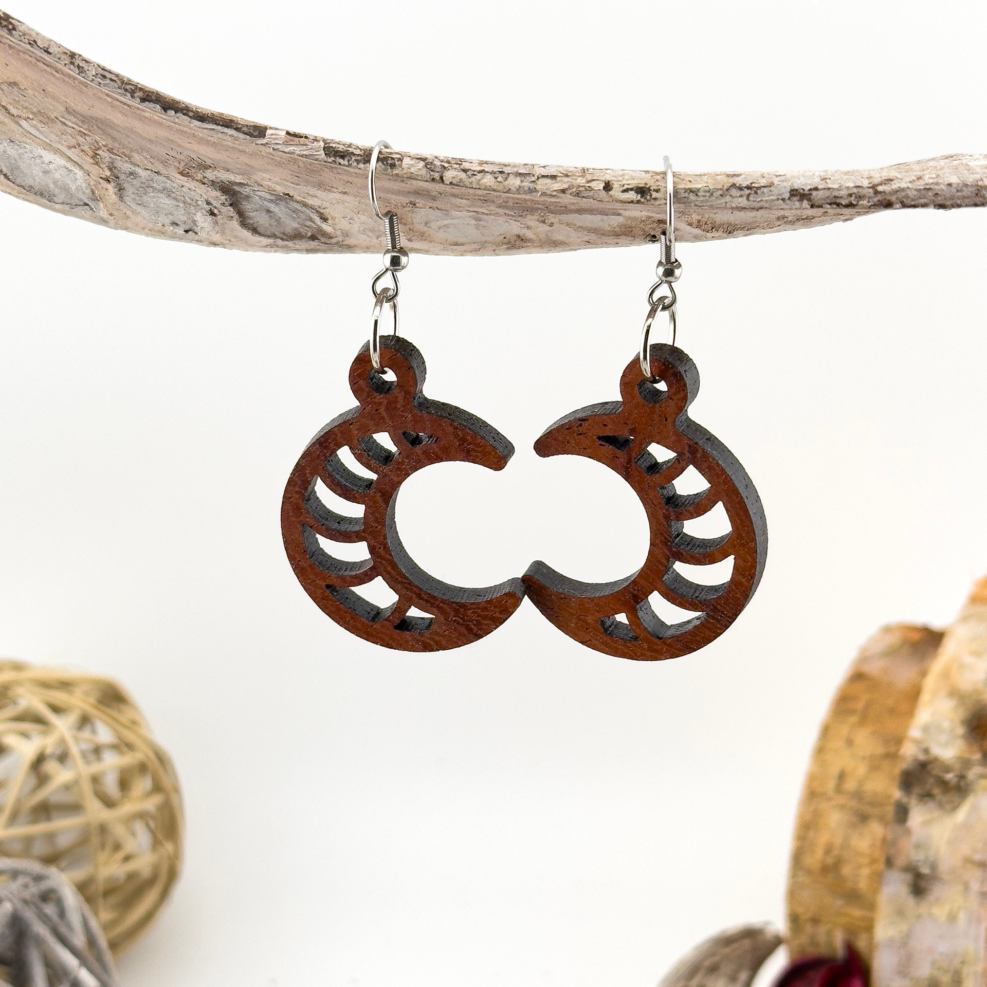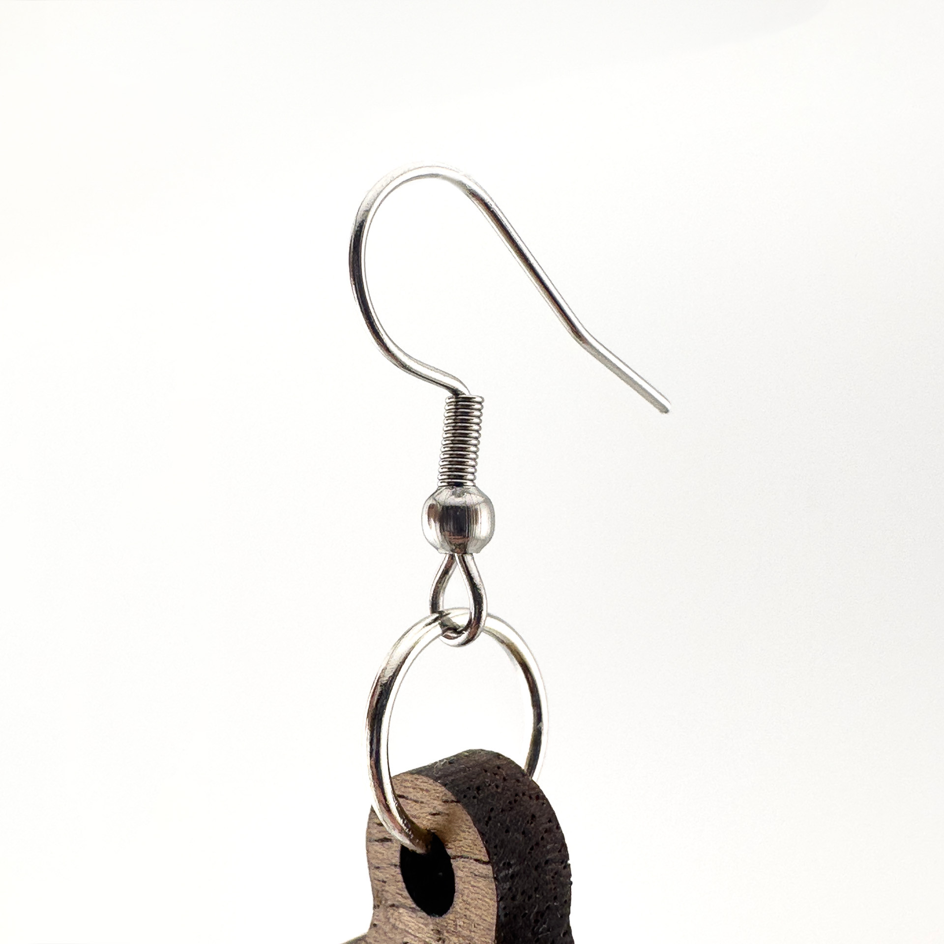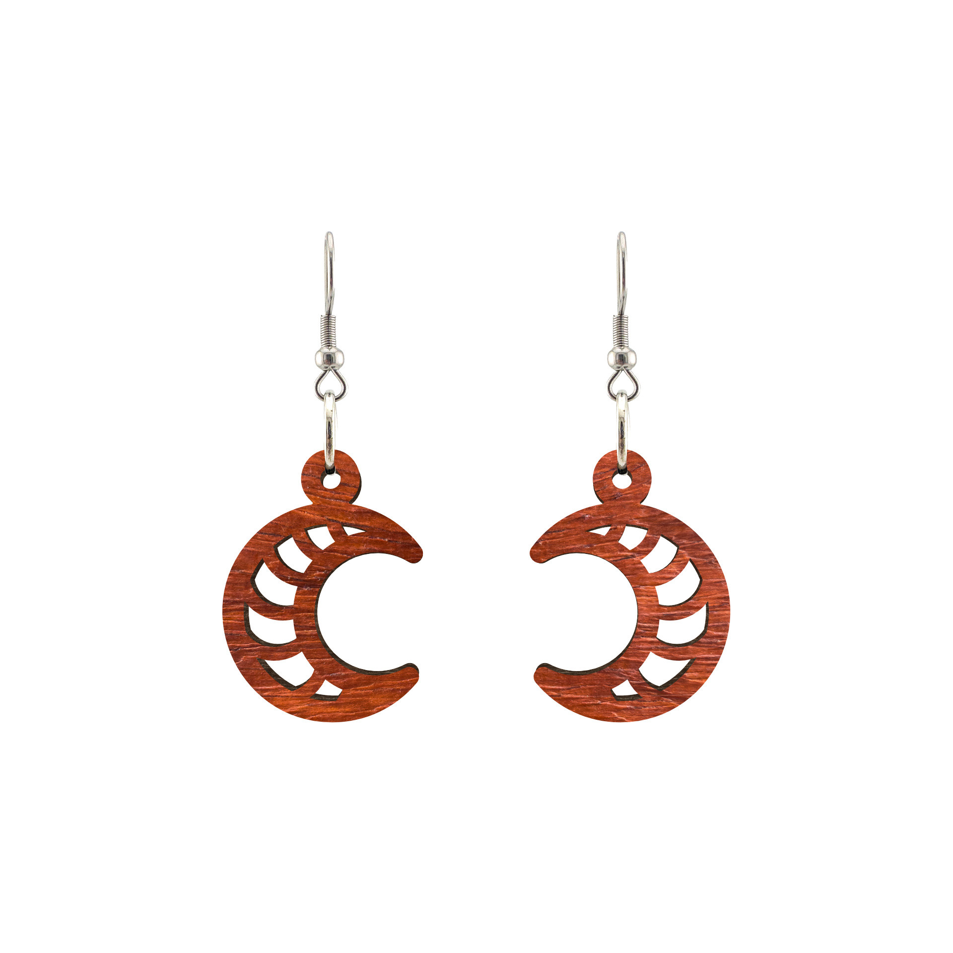 Kolczyki drewniane, drewno egzotyczne padouk, bigle ze stali chirurgicznej, projekt 41