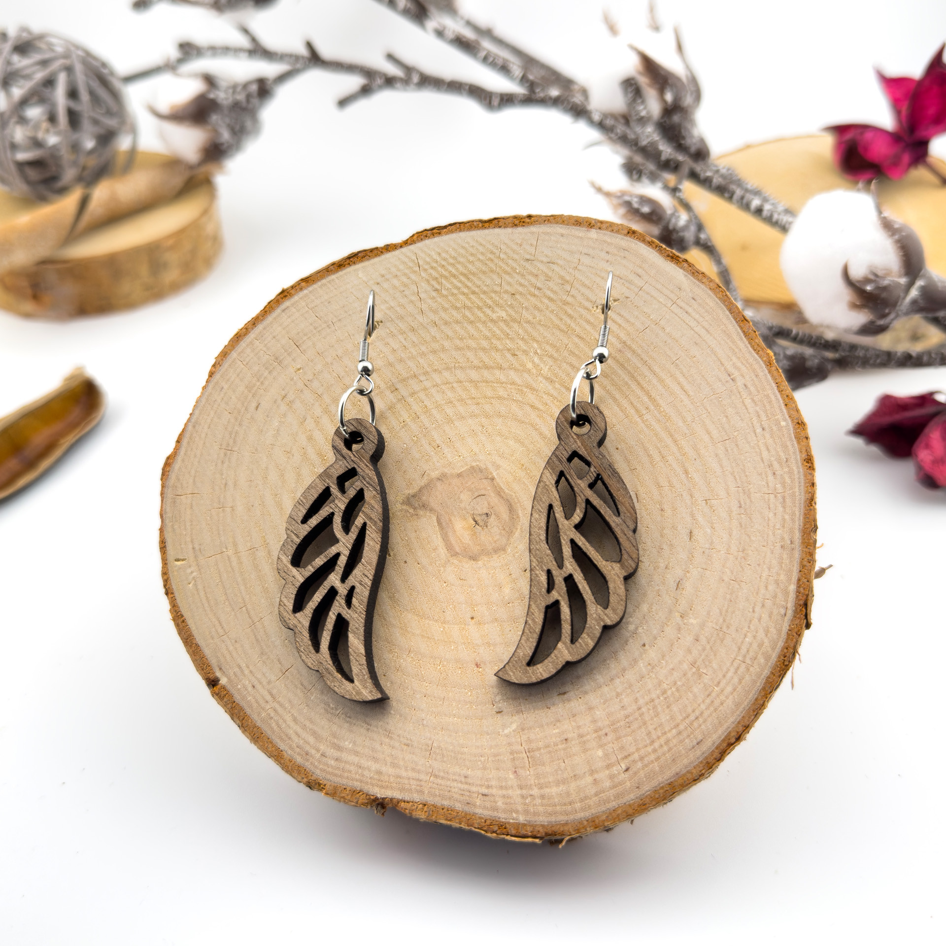 Kolczyki drewniane, orzech włoski, bigle ze stali chirurgicznej, projekt 43