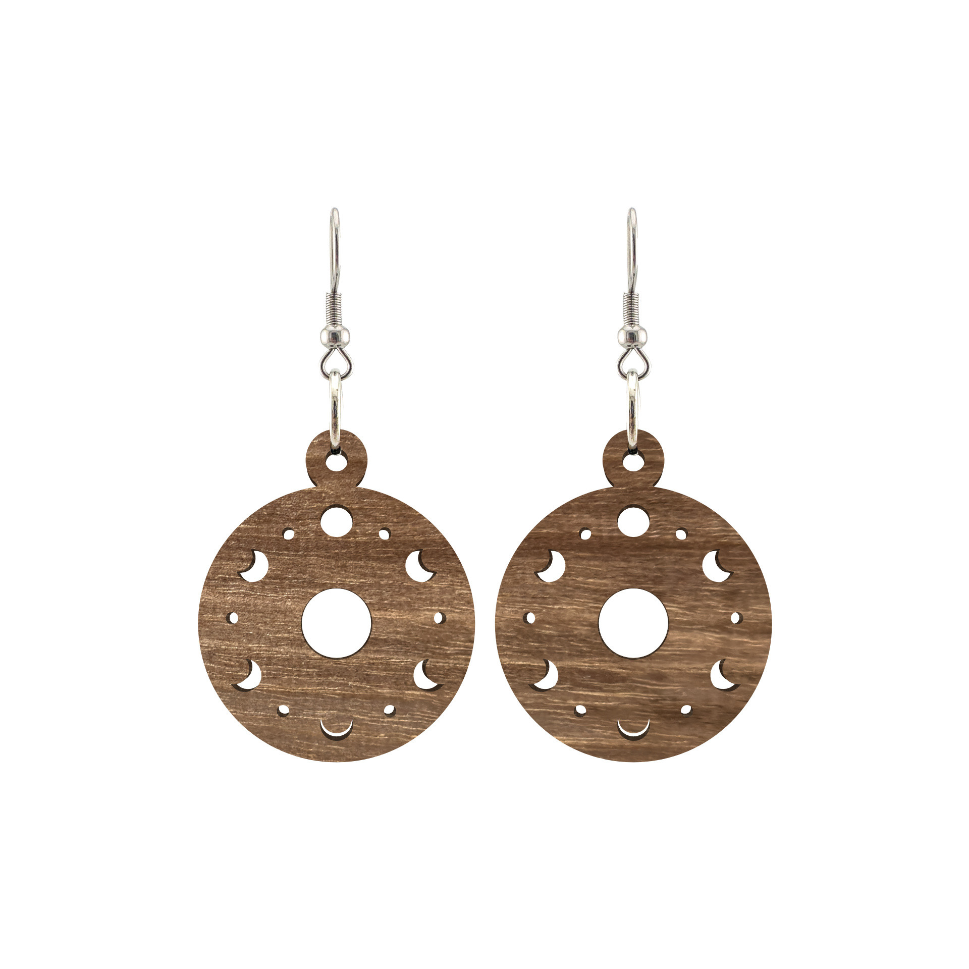 Kolczyki drewniane, orzech włoski, bigle ze stali chirurgicznej, projekt 44