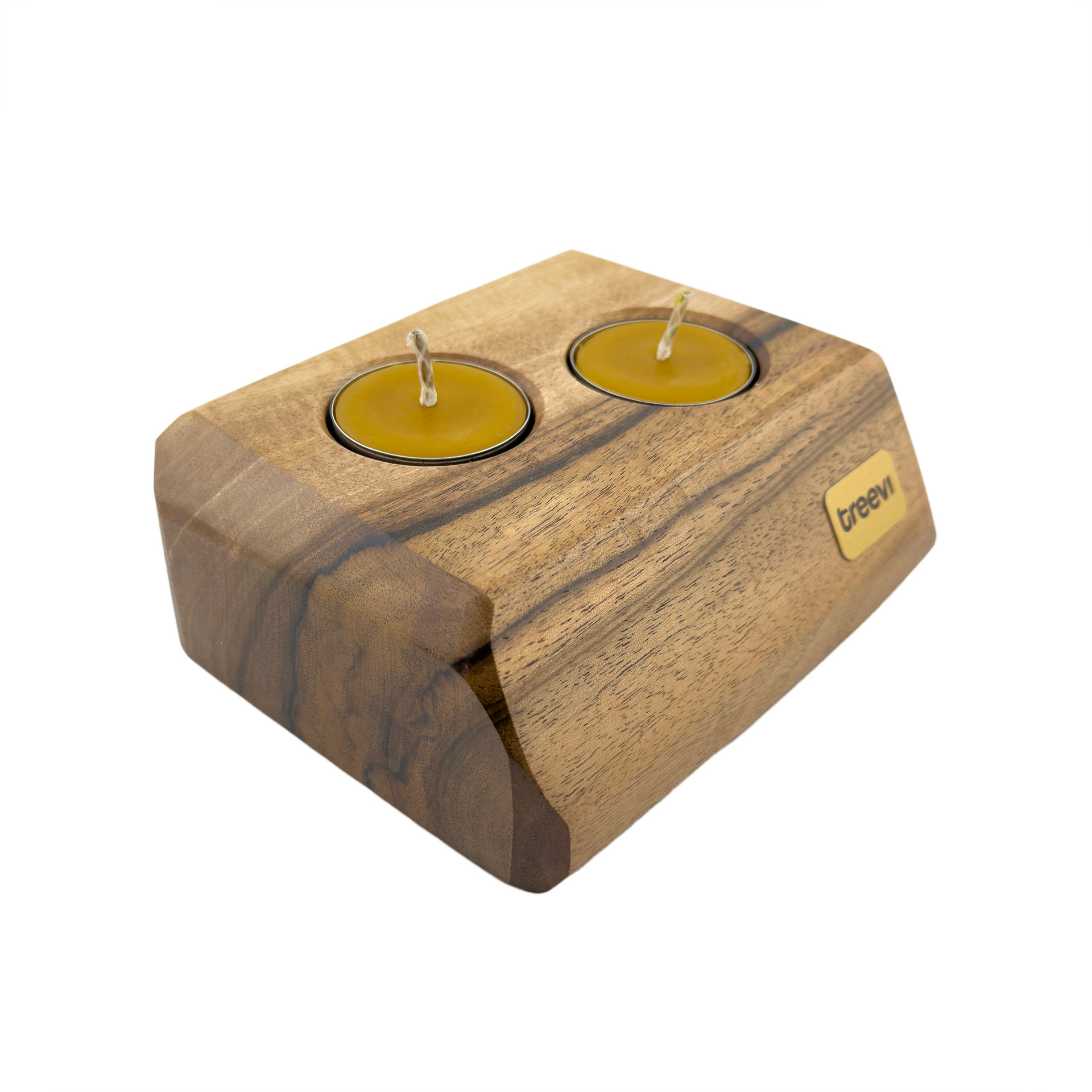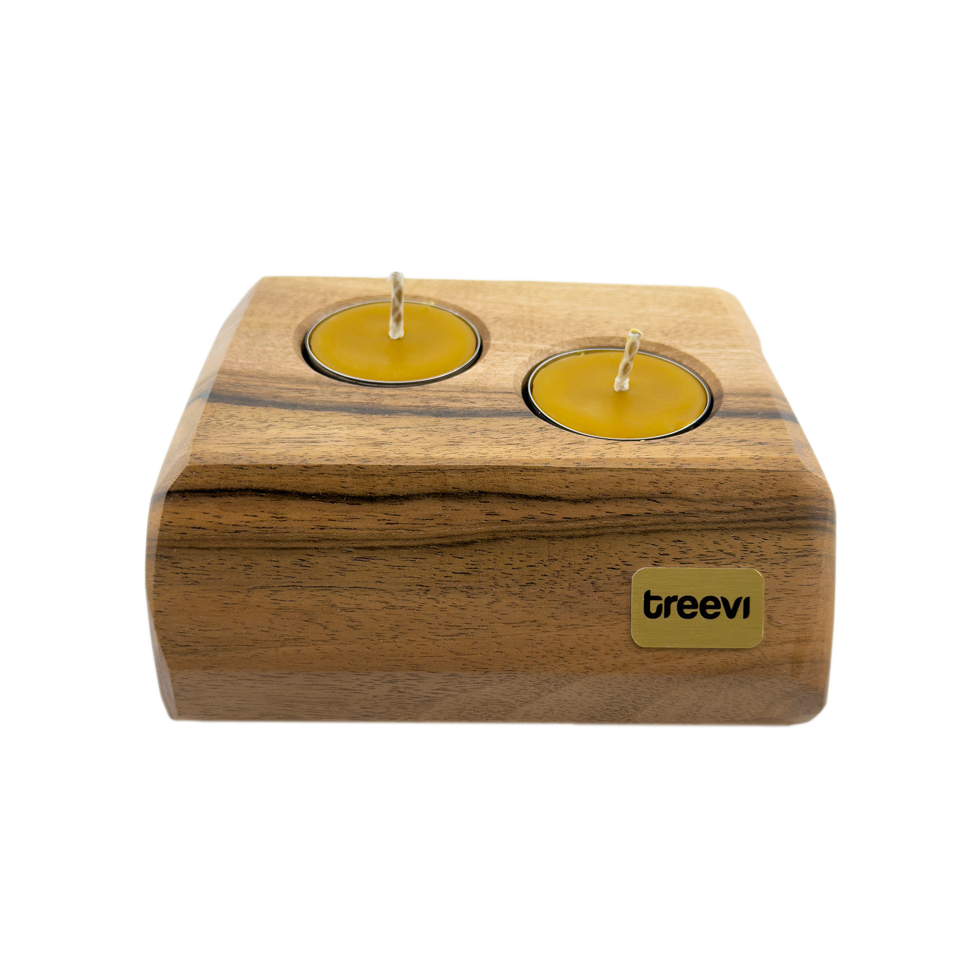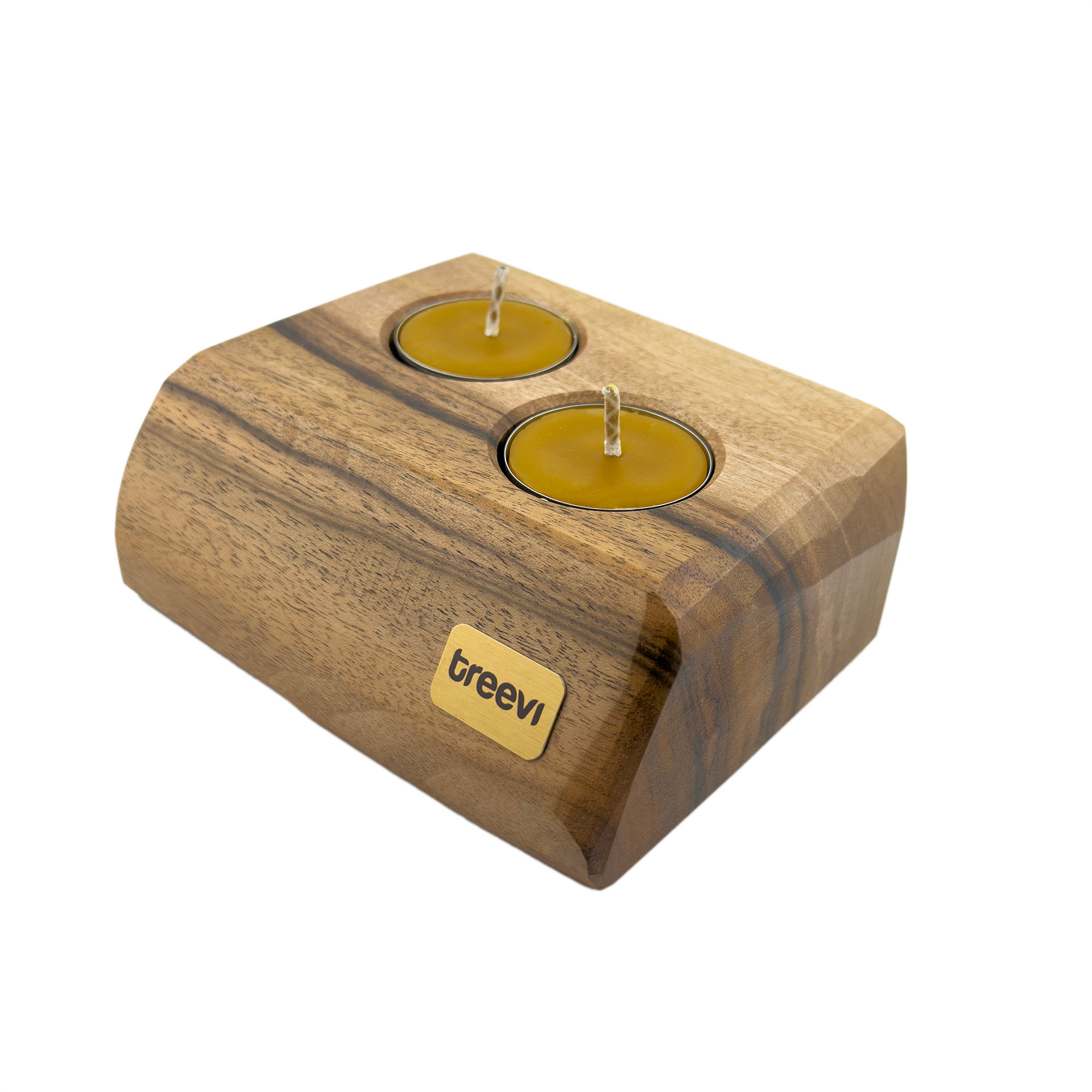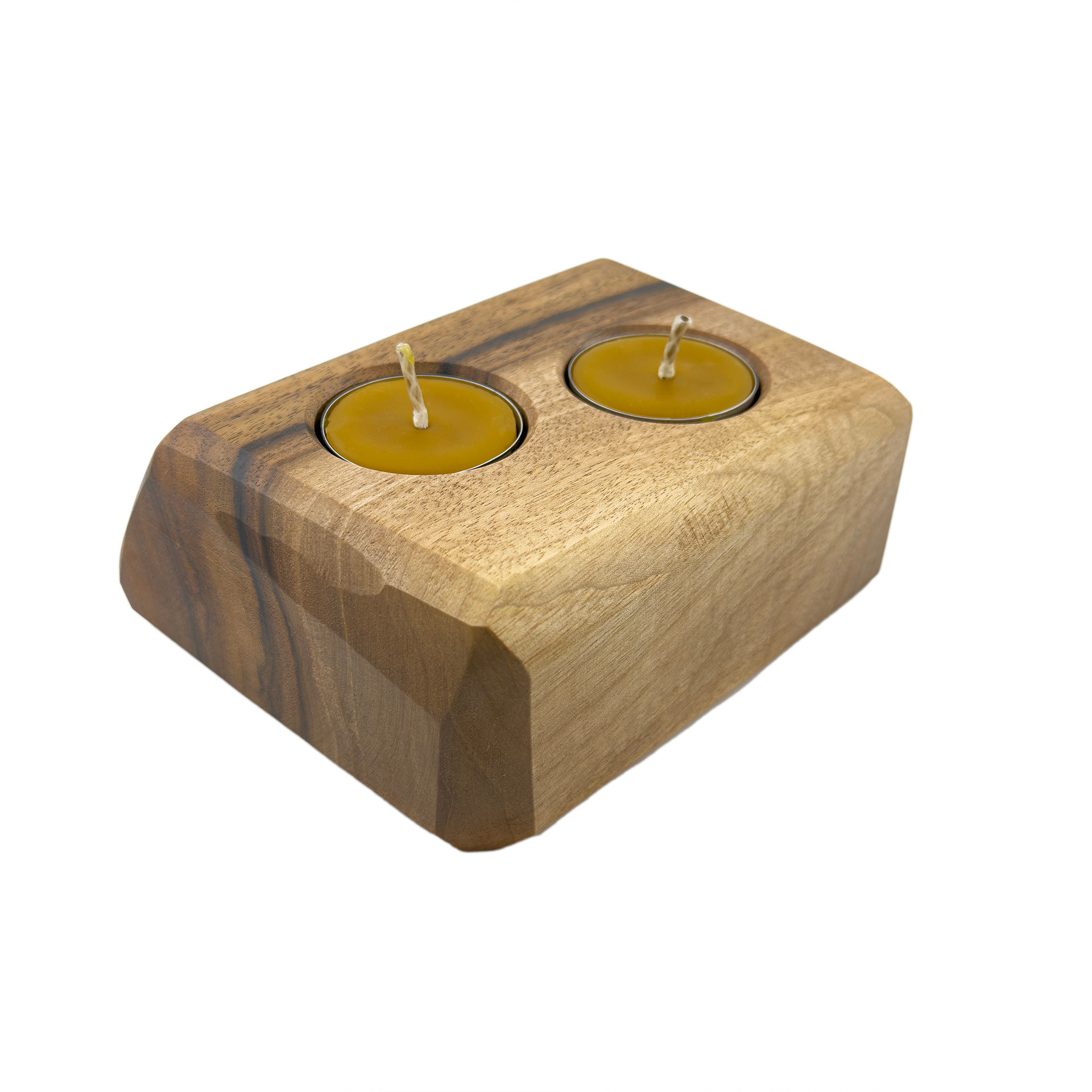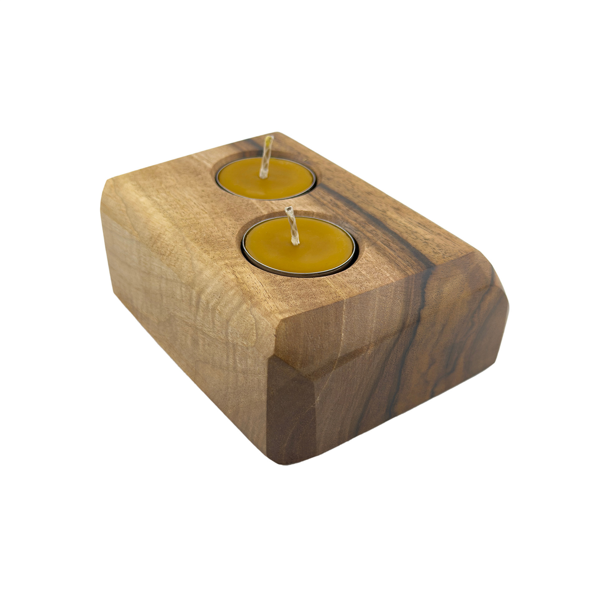 Drewniany świecznik na tealighty, orzech włoski, 13.3 cm x 10.8 cm, wosk pszczeli, unikatowy egzemplarz