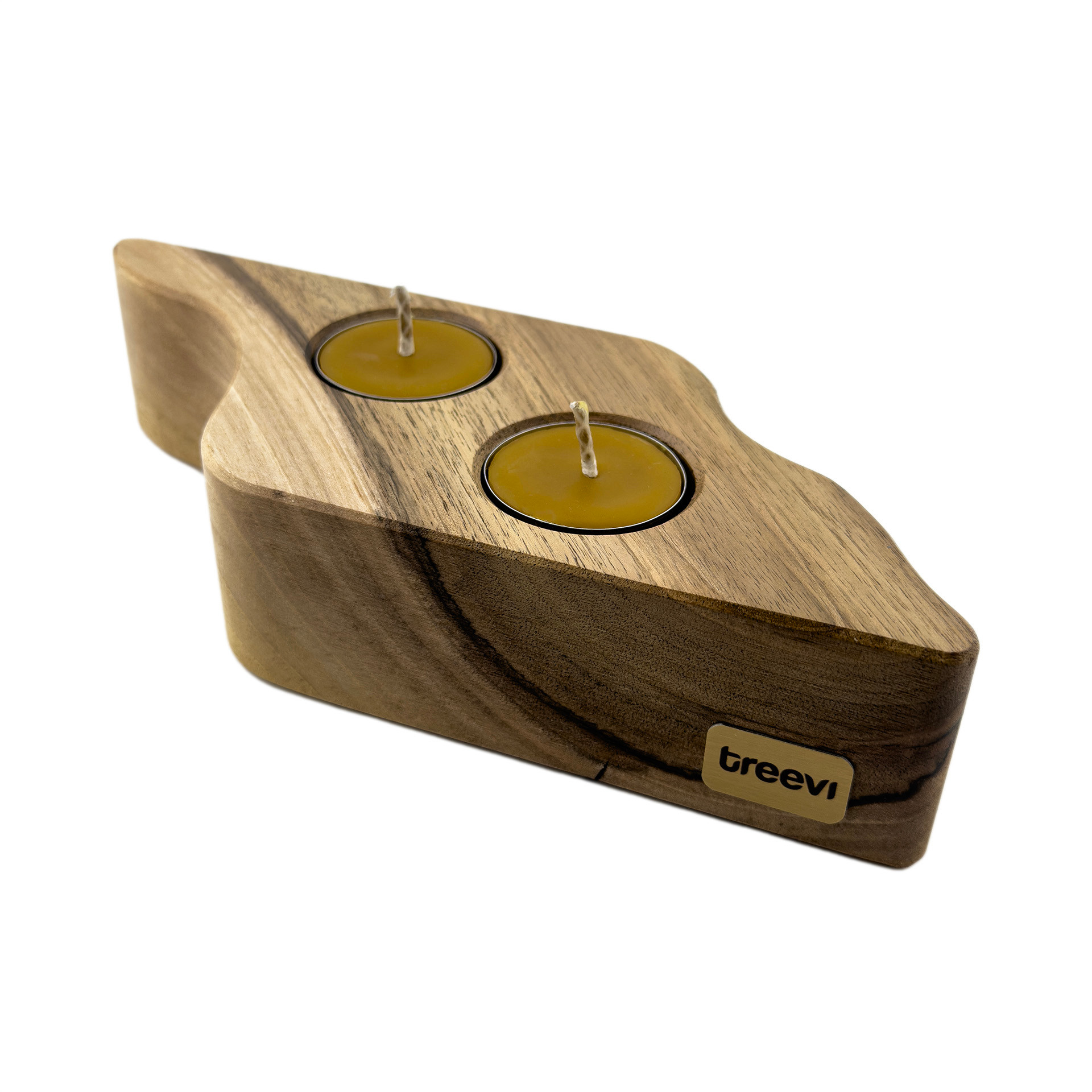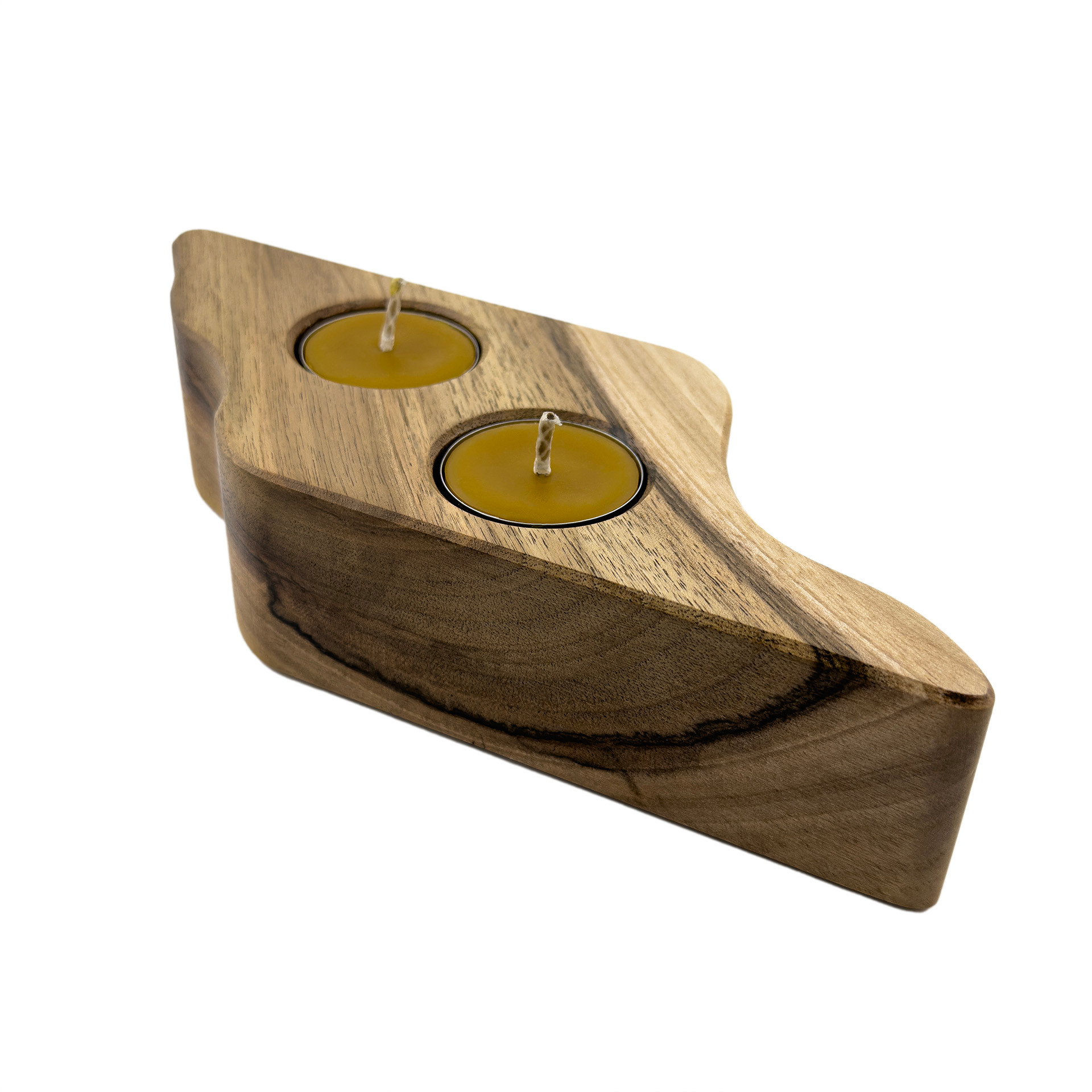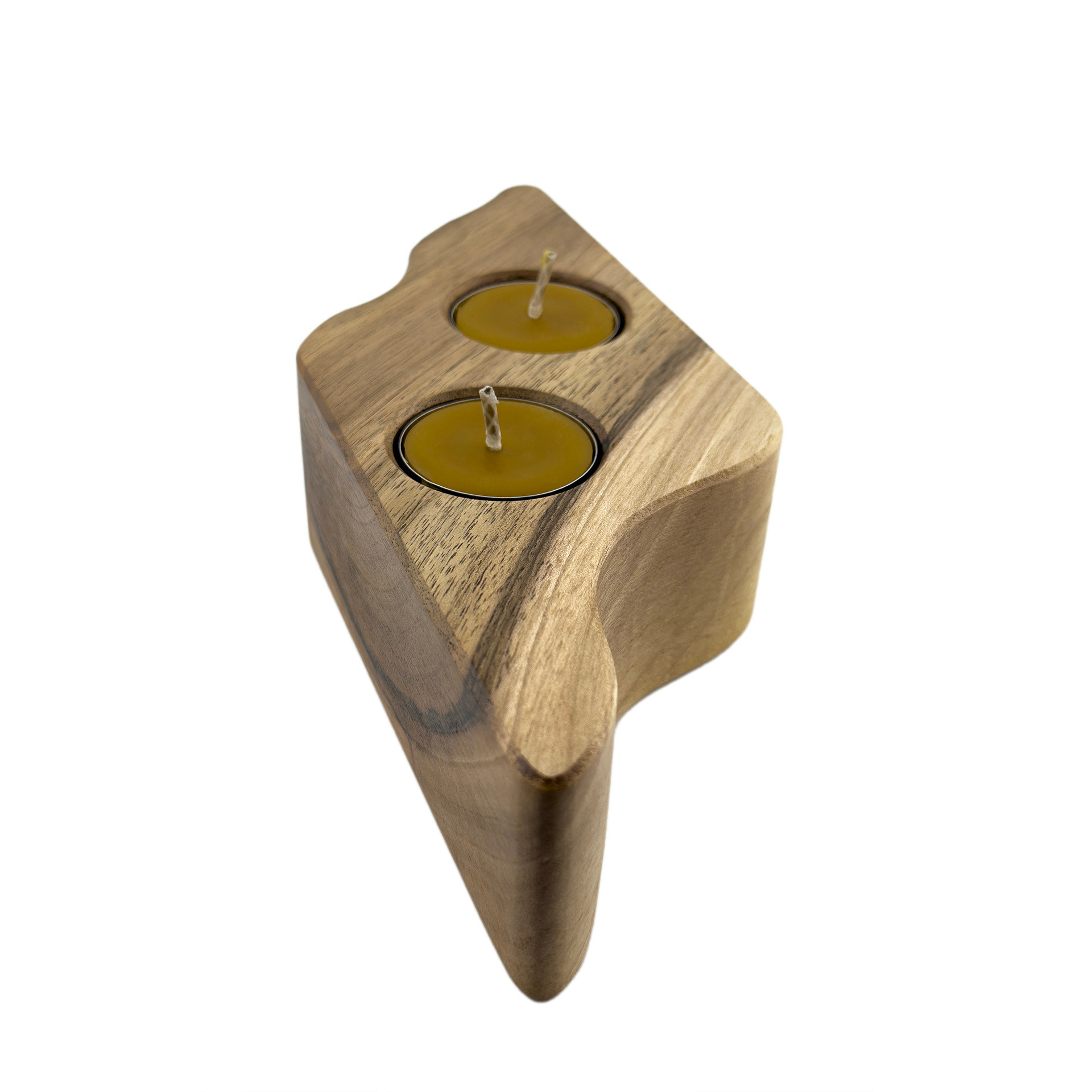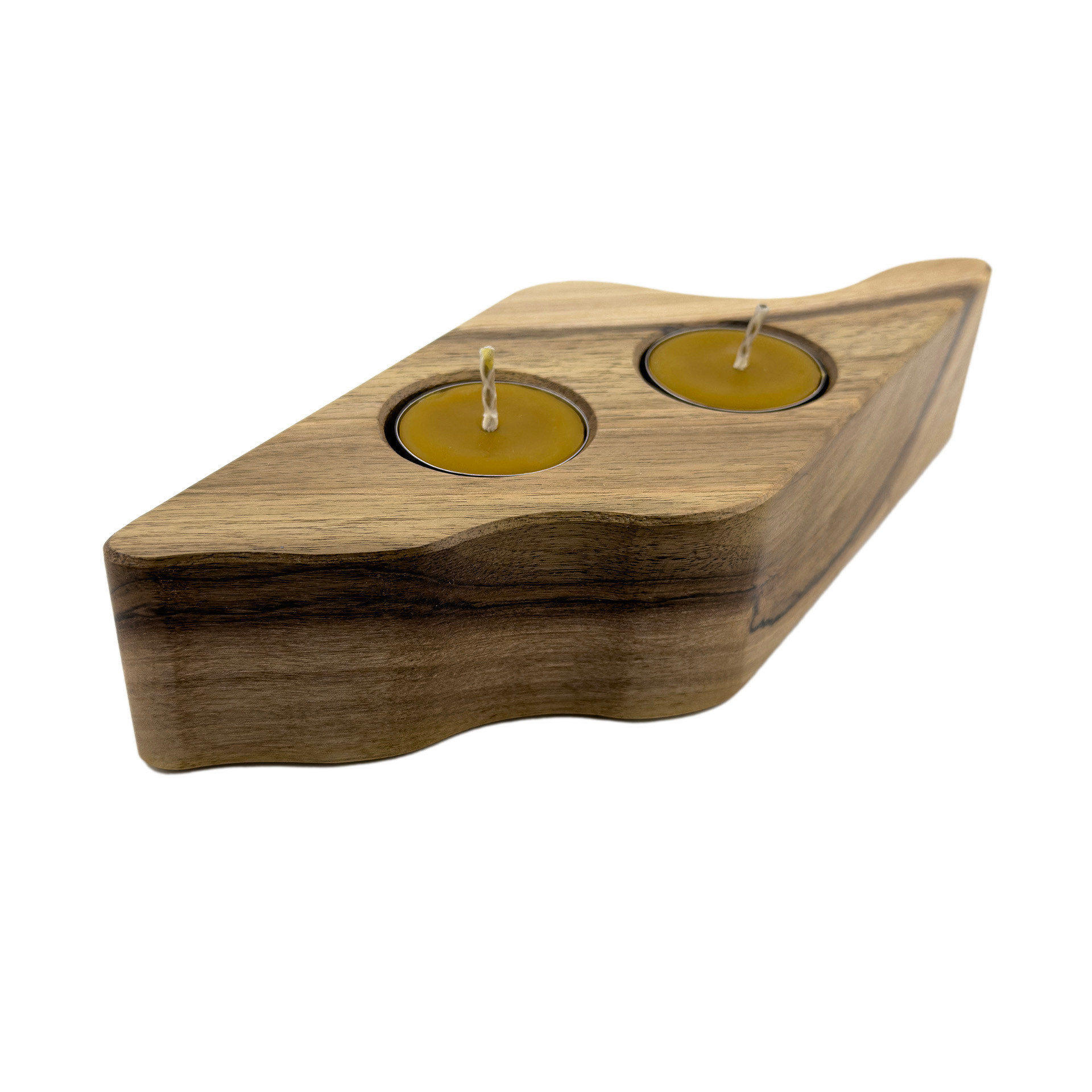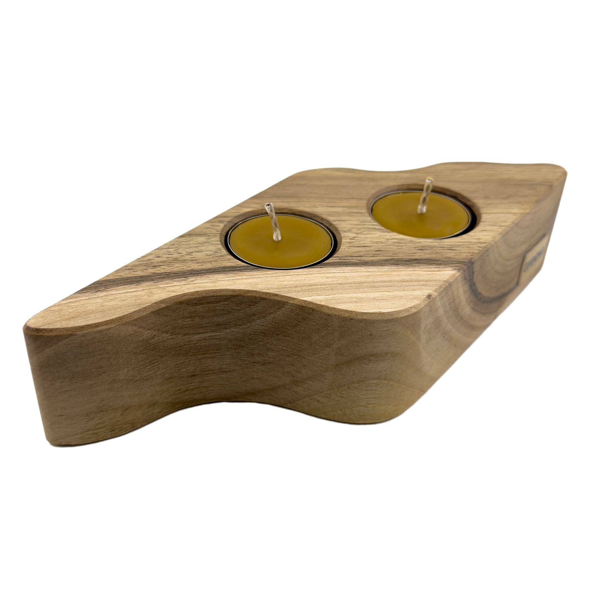 Drewniany świecznik na tealighty, orzech włoski, 22.5 cm x 8.6 cm, wosk pszczeli, unikatowy egzemplarz