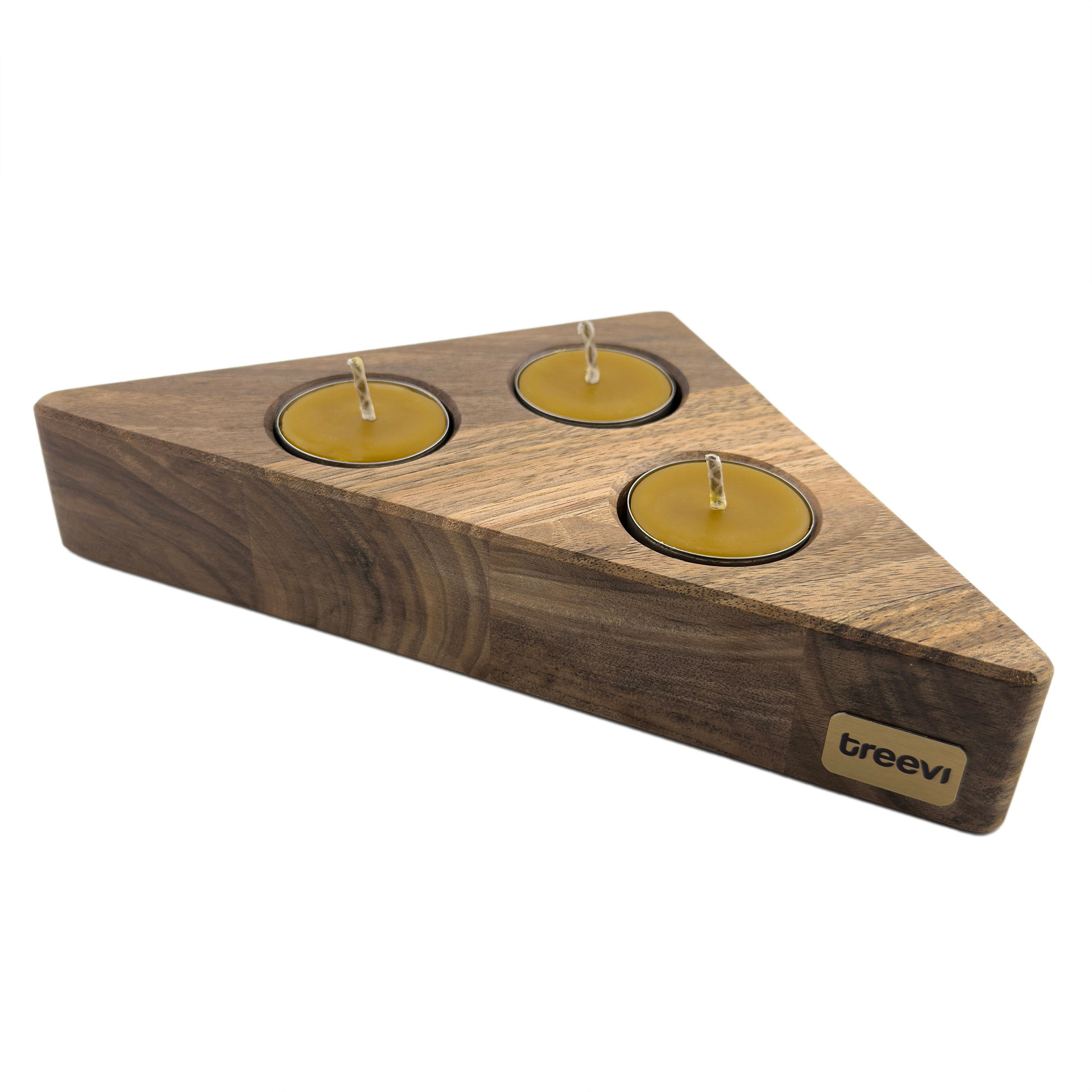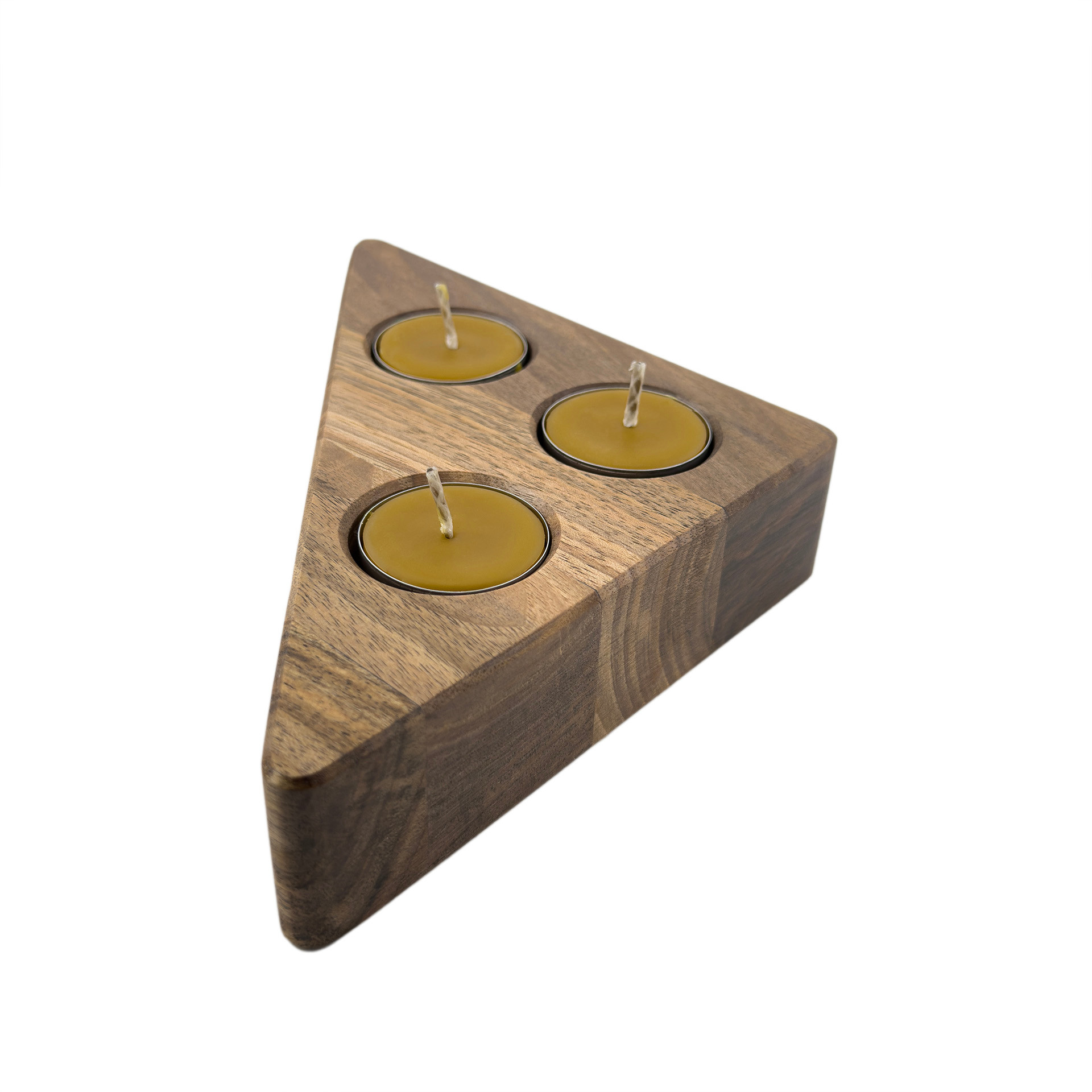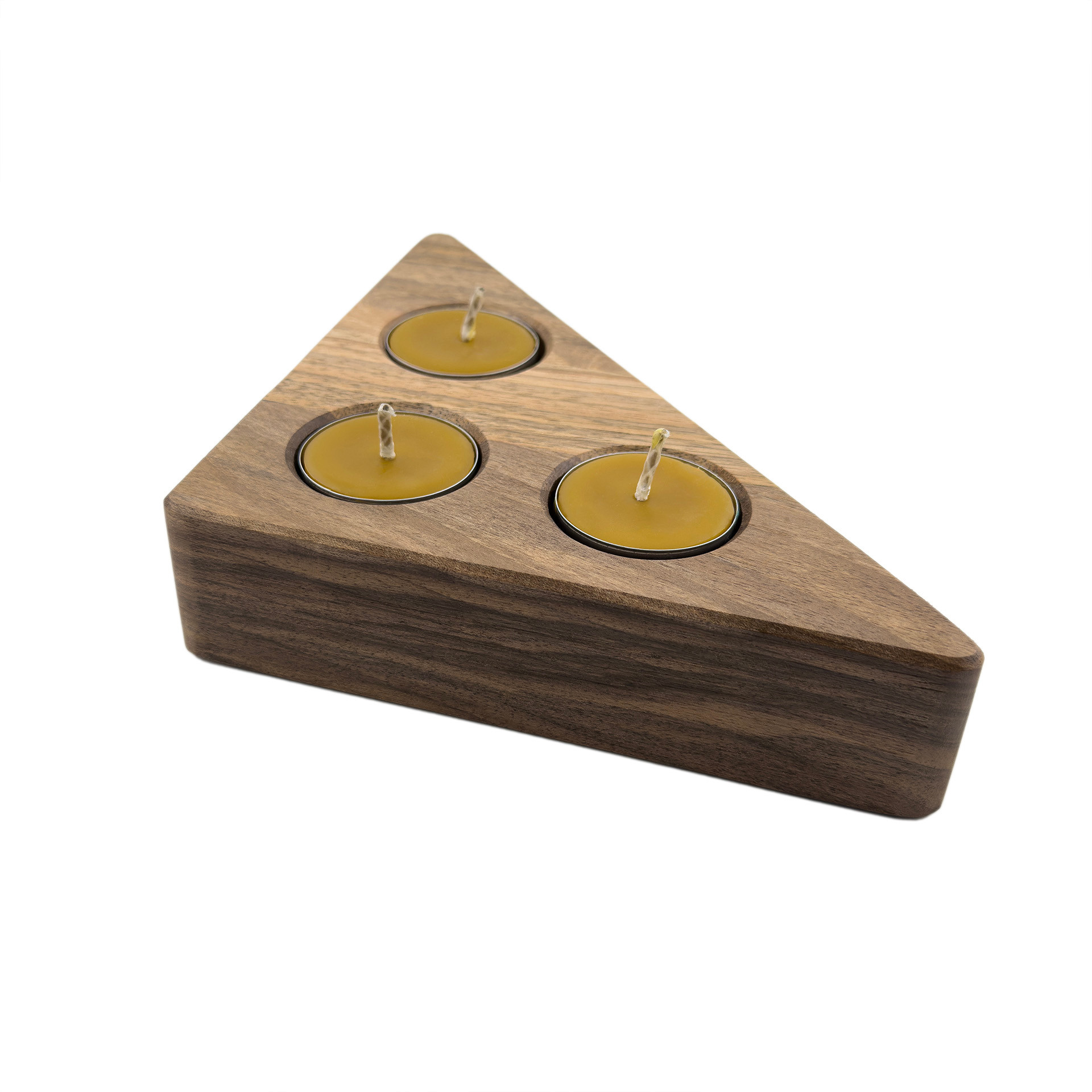 Drewniany świecznik na tealighty, orzech włoski, 21.7 cm x 11.5 cm, wosk pszczeli