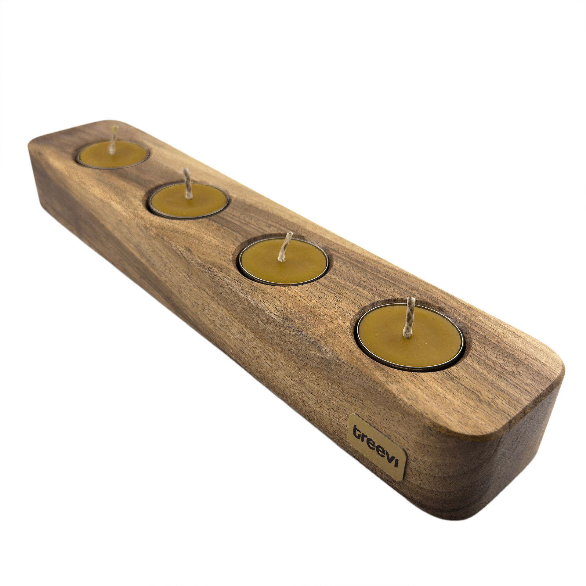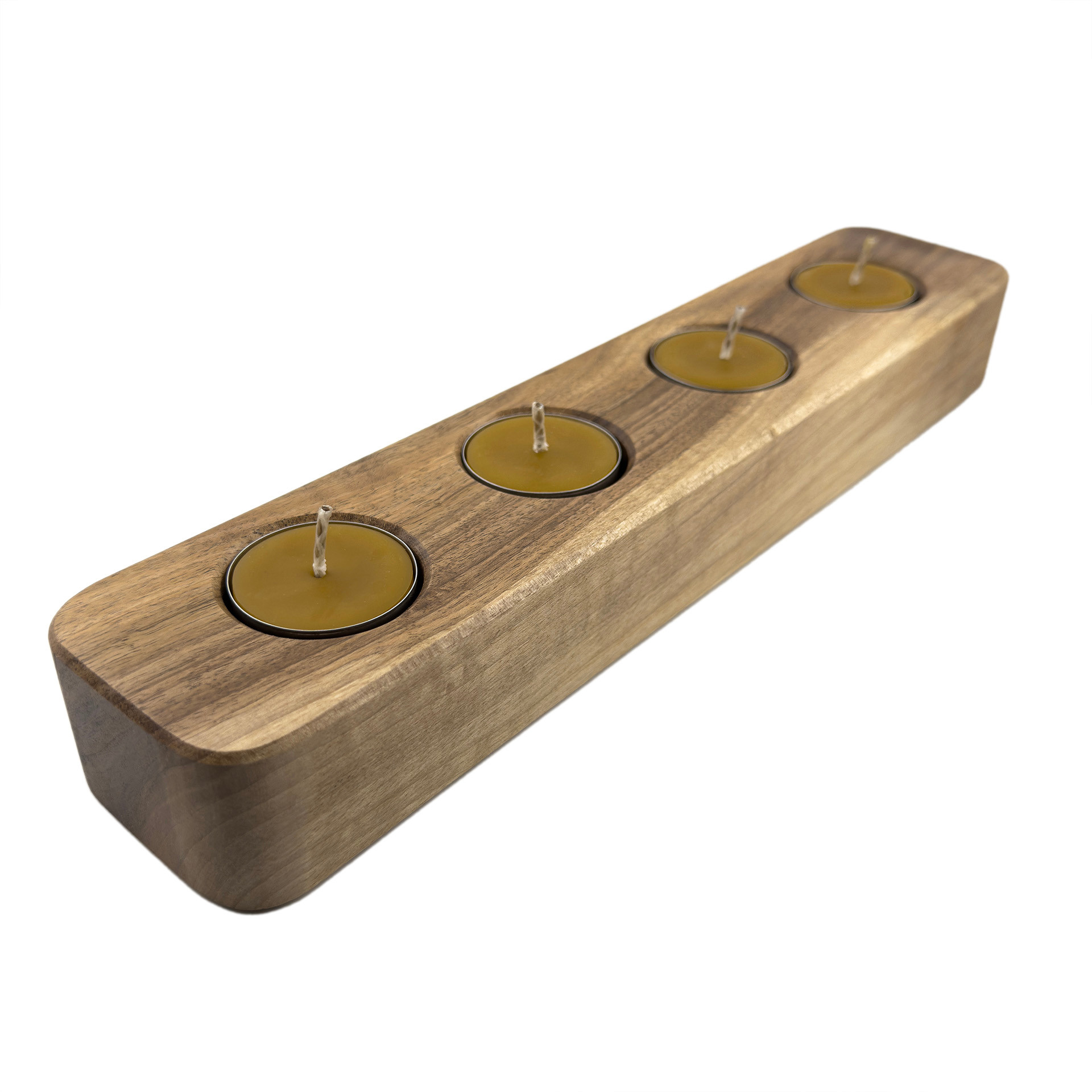 Drewniany świecznik na tealighty, orzech włoski, 31 cm x 6.5 cm, wosk pszczeli