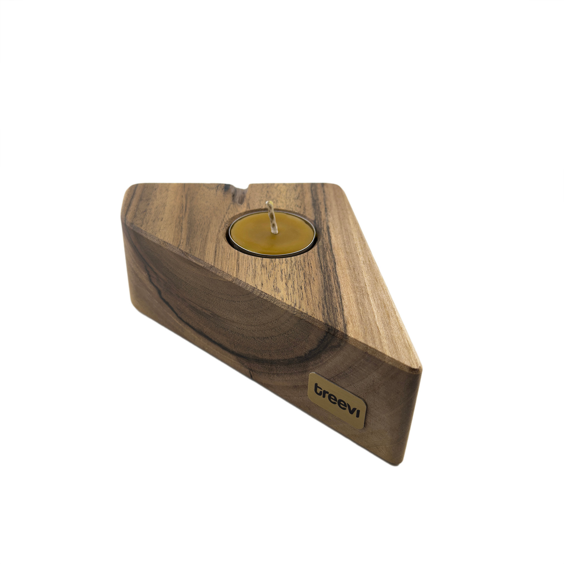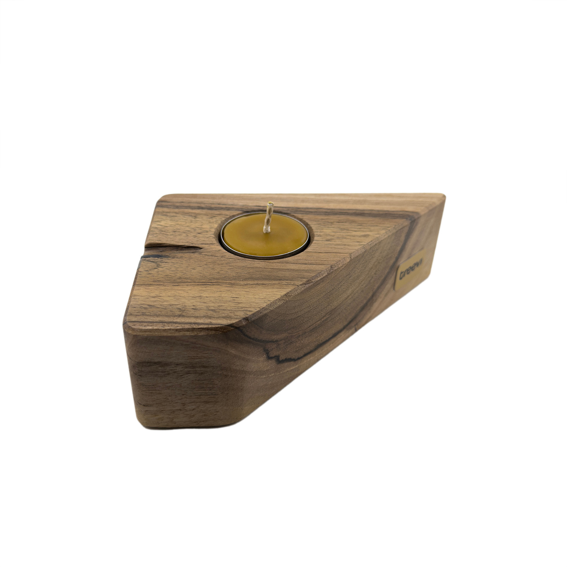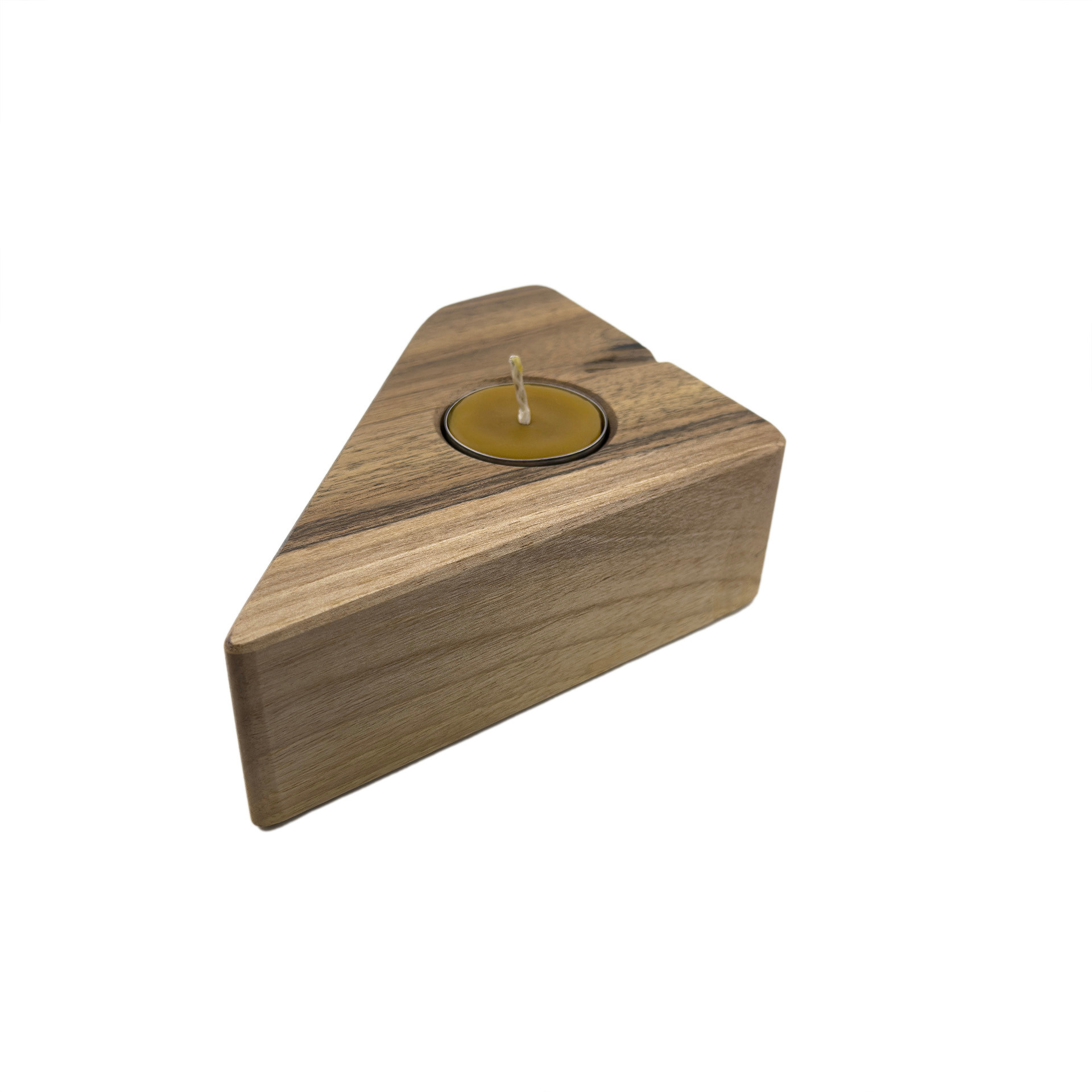 Drewniany świecznik na tealighty, orzech włoski, 17 cm x 9.8 cm, wosk pszczeli, unikatowy egzemplarz